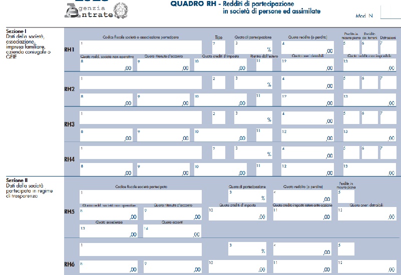 Il Quadro RH nella dichiarazione dei redditi è utile a dichiarare  le quote di reddito derivanti da partecipazioni in società e associazioni o imprese familiari o coniugali.